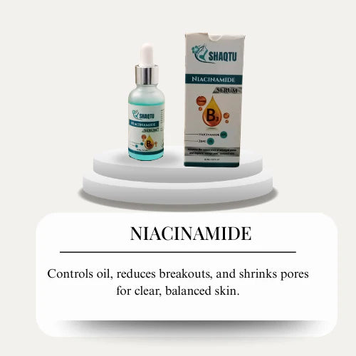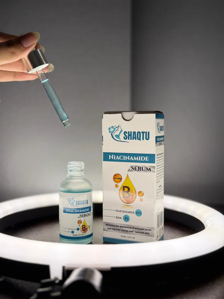 Tackle breakouts, excess oil, and uneven skin tone with Shaqtu’s powerful blend of Niacinamide (Vitamin B3) 10% and Zinc 1%.